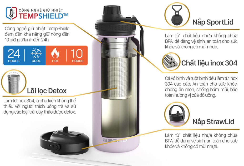 Chiếc bình này sẽ giúp bảo quản đồ uống, thực phẩm tốt, đảm bảo những đồ uống này giữ được hương vị tươi ngon và có lợi cho sức khỏe.