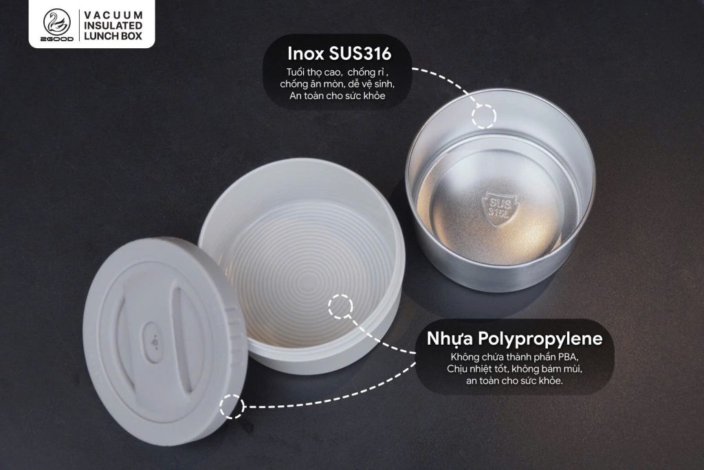 | Chất liệu: Vỏ Inox 316, Nhựa nguyên sinh không BPA, Ruột bình Inox 304. |