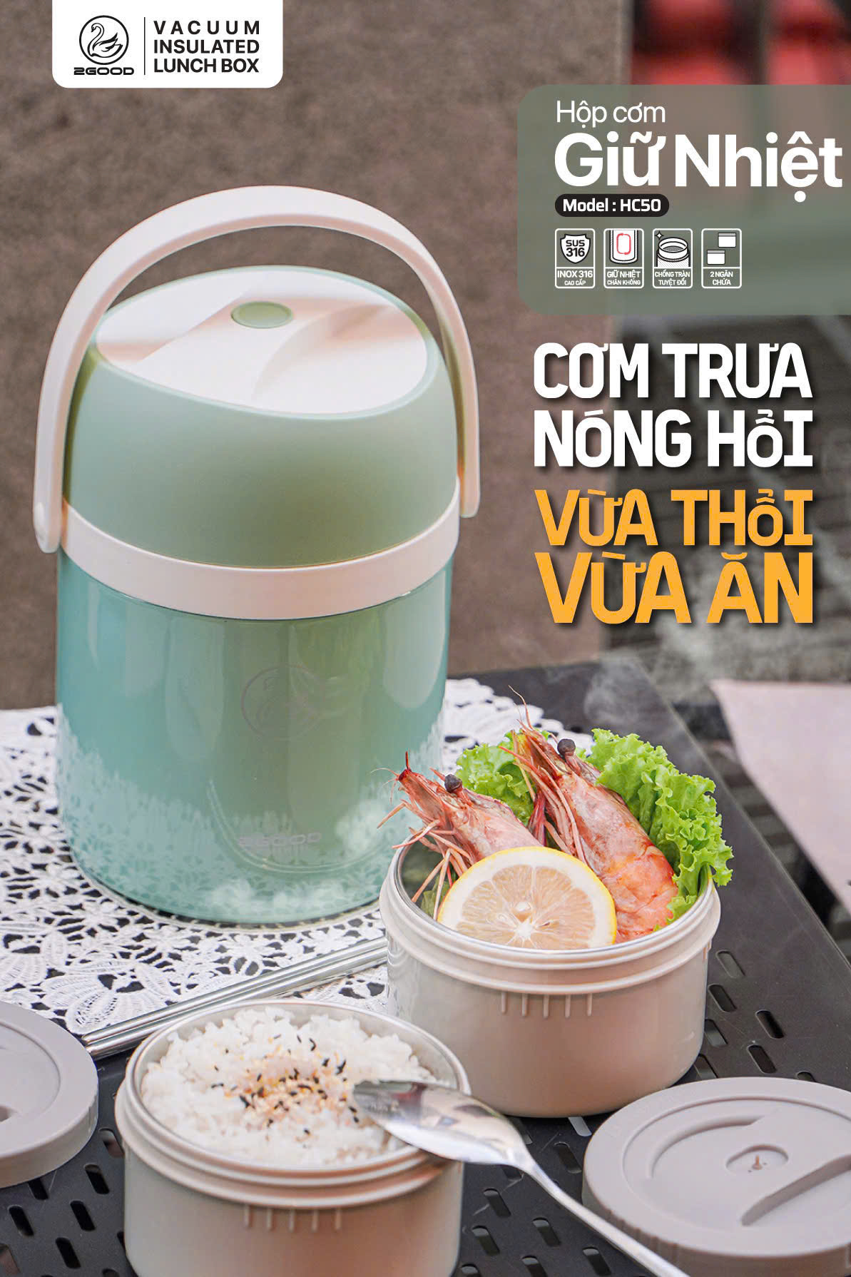2GOOD HC50 Hộp Cơm Giữ Nhiệt