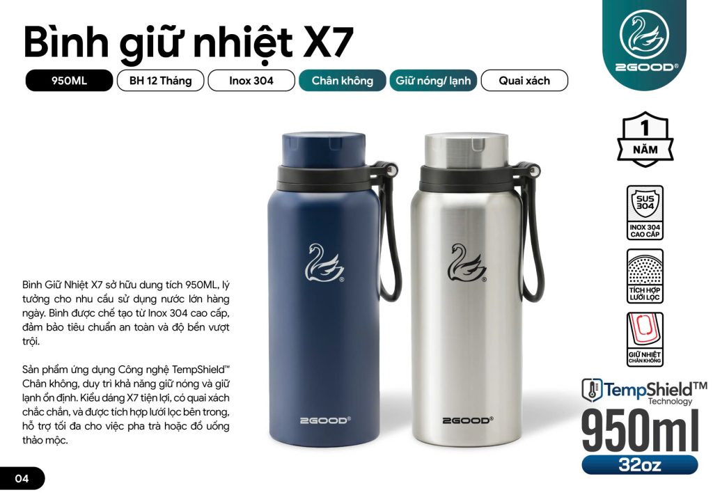 | Chất liệu: Vỏ Inox 304, Nhựa nguyên sinh không BPA, Ruột bình Inox 304. |
